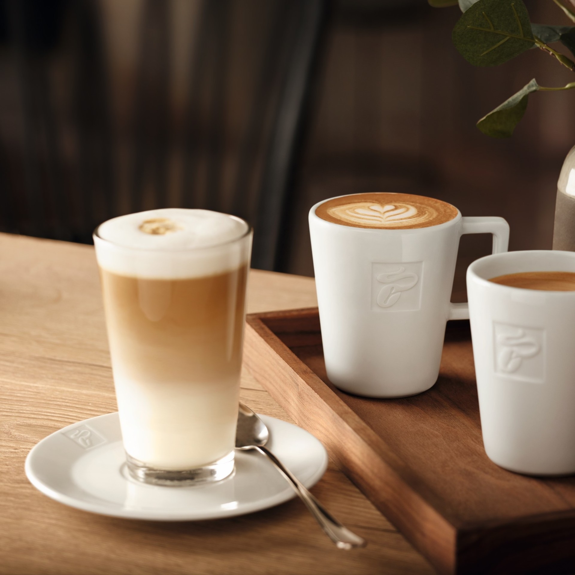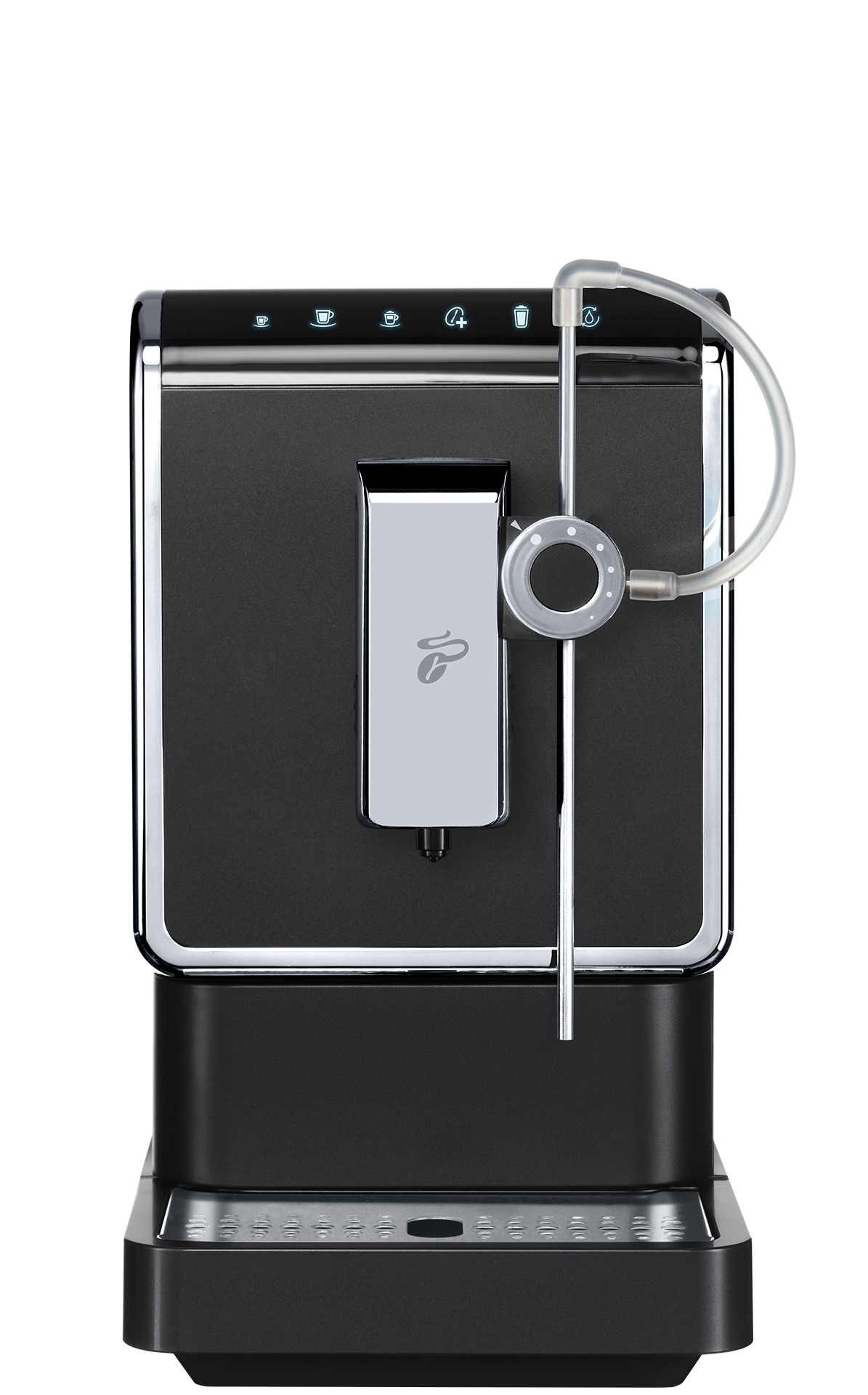 Aparat de cafea automat cu funcționare silențioasă într-un design compact. Tchibo Esperto PRO vă permite să selectați intensitatea cafelei și funcția doppio. Pregătiți un Cappuccino sau un Latte prin atingerea unui singur buton.
